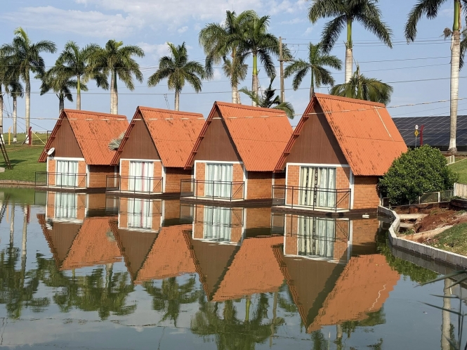 O local dispõe de chalés, casa, apartamentos, área de camping, passeio de charrete, pedalinho, gramado para futebol, animais exóticos, uma piscina coberta com dois toboágua, café da manhã, restaurante e churrasqueiras.